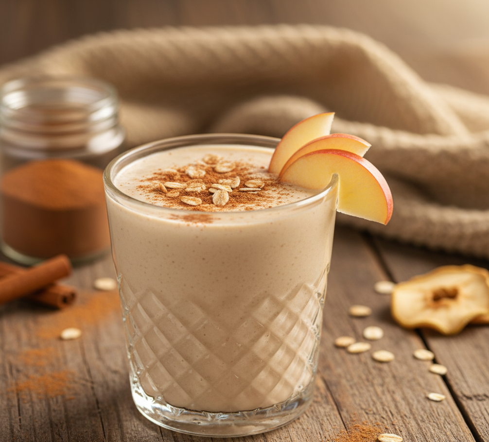 The cozy taste of apple pie in a healthy, protein-rich breakfast glass.