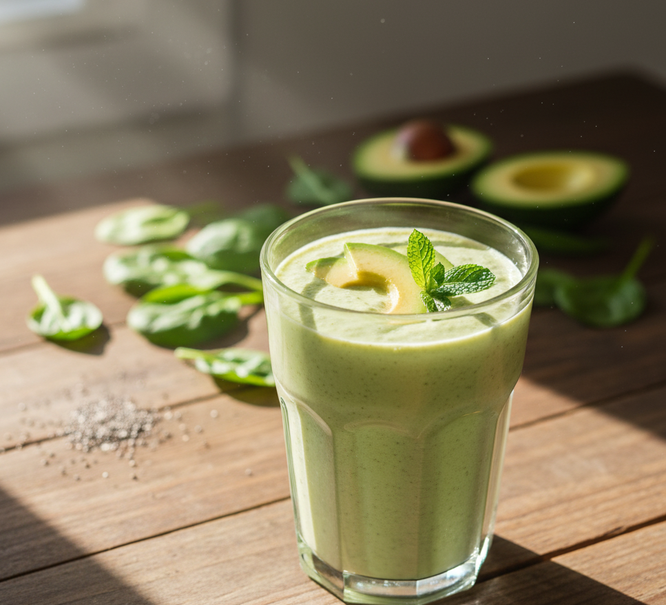 A nutrient-rich green smoothie packed with spinach, avocado, and protein for steady energy and a natural detox effect.