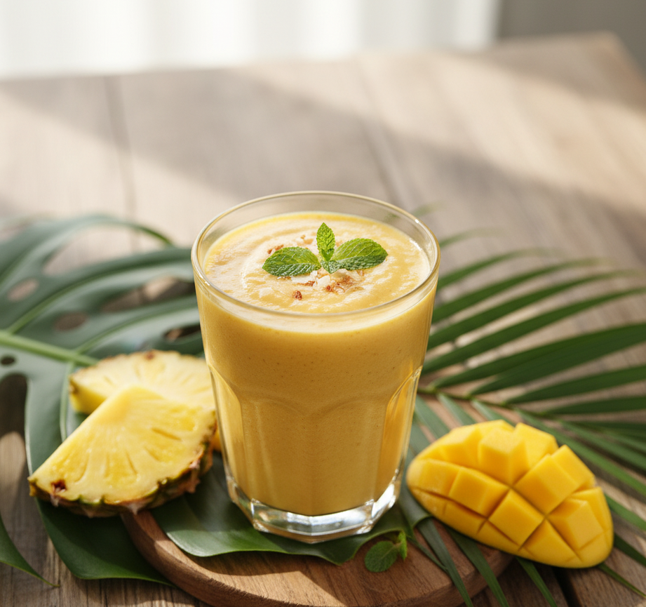 A sweet and creamy tropical smoothie filled with mango, pineapple, and coconut milk for a light yet powerful start to your day.