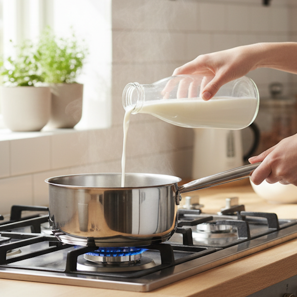 - Heat the milk: Pour milk into a saucepan and warm over medium heat until it reaches about 180°F (82°C). Stir gently to avoid scorching.