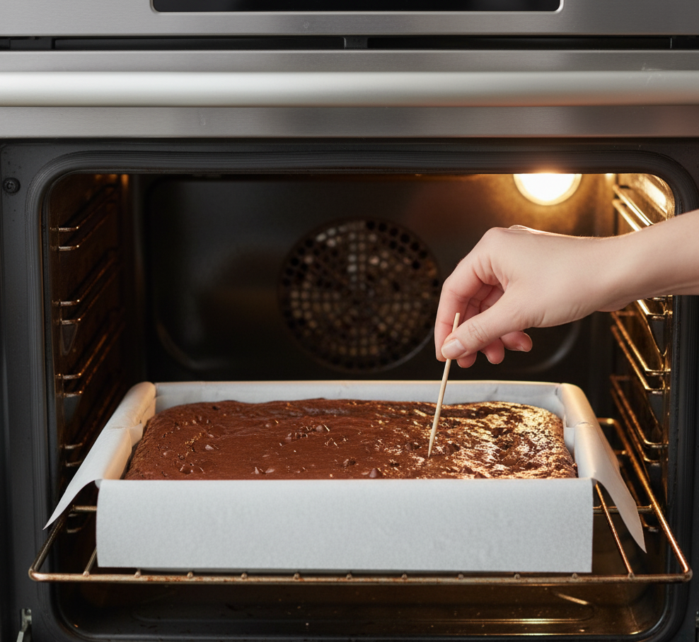 - Bake 30–35 minutes, checking with a toothpick to ensure it comes out mostly clean but still slightly fudgy.