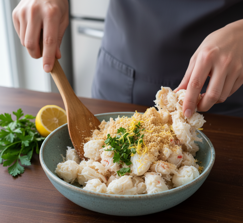 - Prepare the Crab Meat: Gently pick through the crab meat to remove any shells. Avoid over-mixing to keep the lumps intact. Using fresh lump crab meat gives the best texture.