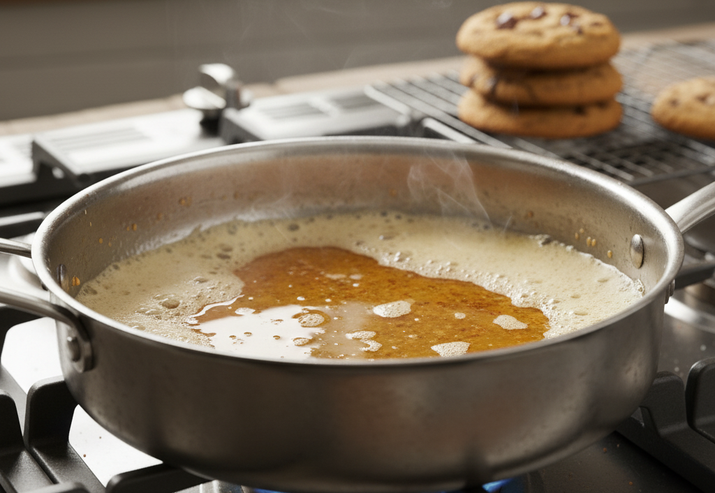 - Brown the butter: In a saucepan, melt butter over medium heat until it foams and turns golden brown. Stir constantly and remove once it smells nutty. Let cool for 10 minutes.